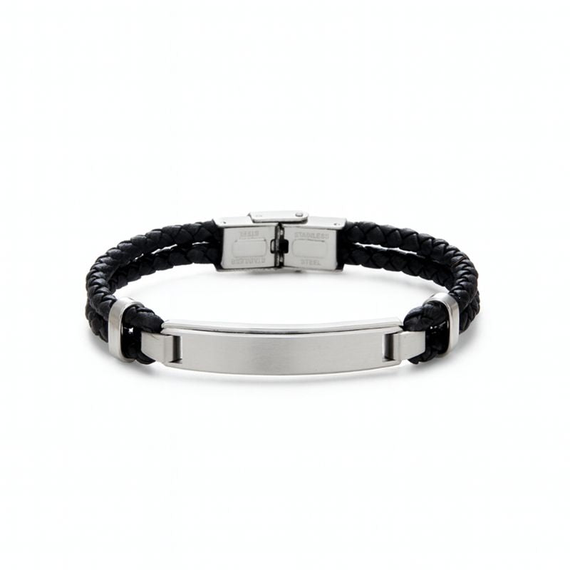 Minimalista, forte e sempre atual, a Myssac Casual Bracelet combina couro trançado preto com uma placa lisa em aço, criando um contraste elegante e discreto. Um detalhe certo para um look cuidado, sem esforço.