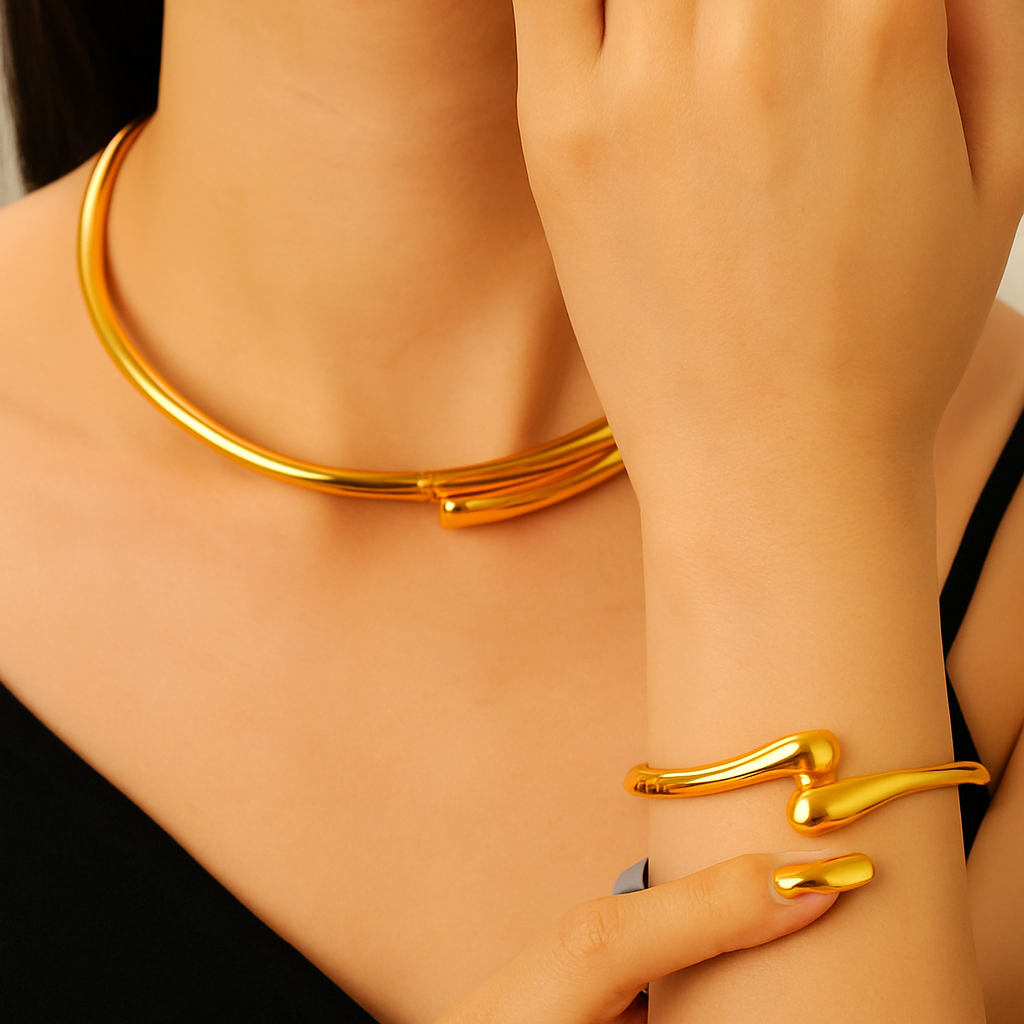 Myssac Charm Set é a definição de luxo minimalista. Com um design fluido e moderno, inspirado em formas orgânicas, transmite sofisticação e poder sem precisar de excessos. O acabamento espelhado e o formato escultural abraçam o corpo com delicadeza, tornando cada movimento uma declaração de estilo.