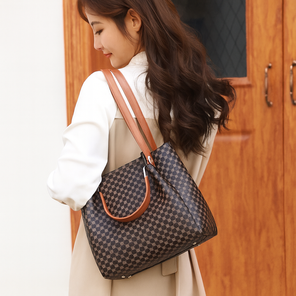 O Myssac Elegant Kit é a solução perfeita para mulheres modernas que valorizam praticidade sem abrir mão da elegância. Com um design clássico em padrão geométrico e detalhes em alças castanhas, cada peça oferece funcionalidade e charme em diferentes ocasiões, podendo usá-las e conjugá-las em simultâneo. Um investimento inteligente que combina moda, utilidade e distinção em qualquer look.