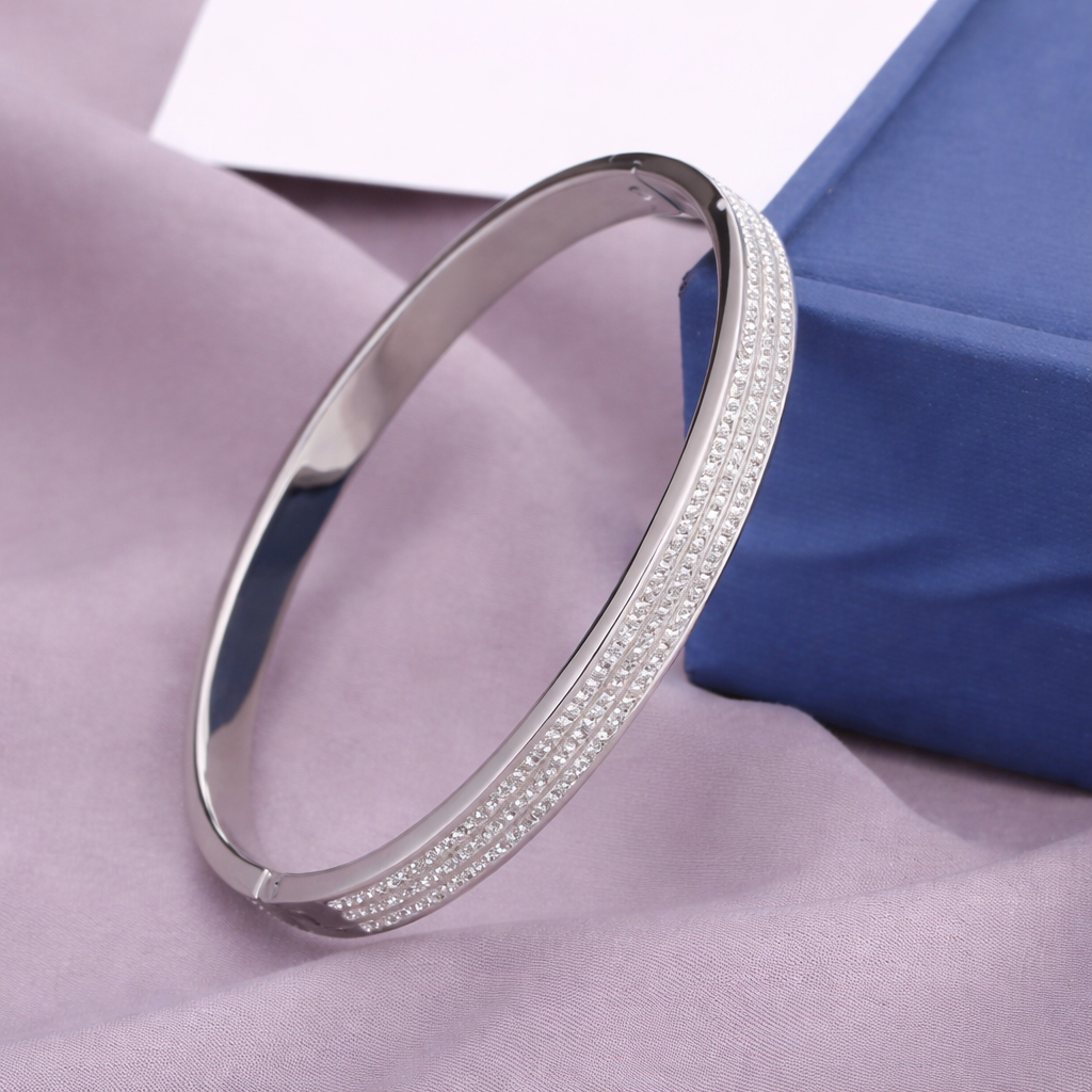 Delicada no traço, sofisticada no detalhe, a Myssac Round Bracelet envolve o pulso com uma linha elegante, realçada por fileiras de cristais que acrescentam brilho subtil e requinte. É o tipo de peça que não precisa de chamar atenção, conquista pelo equilíbrio, pela luz suave e pela intemporalidade do design.